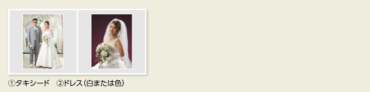 | 紋付袴、打掛(白・色) タキシード、ドレス1着 |
